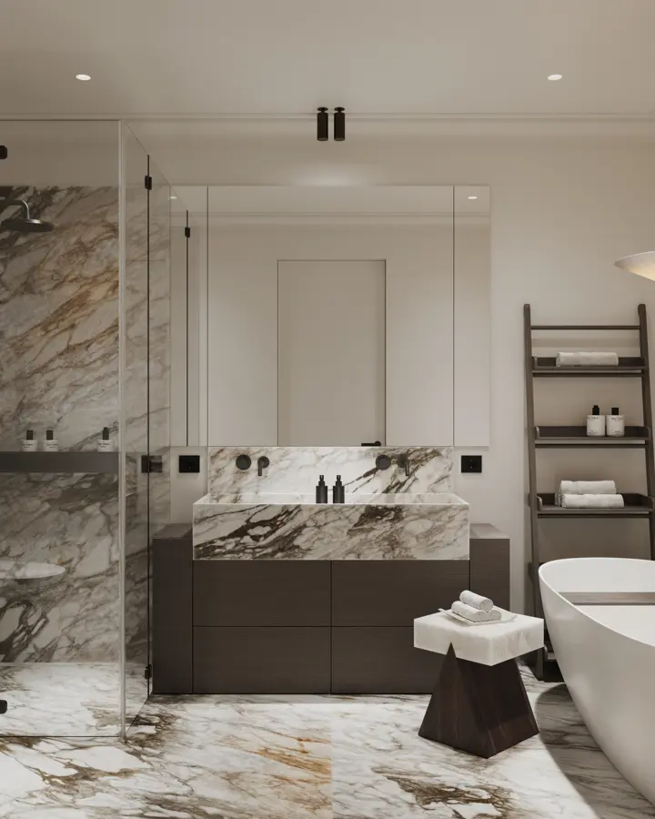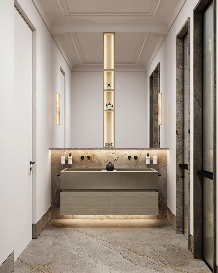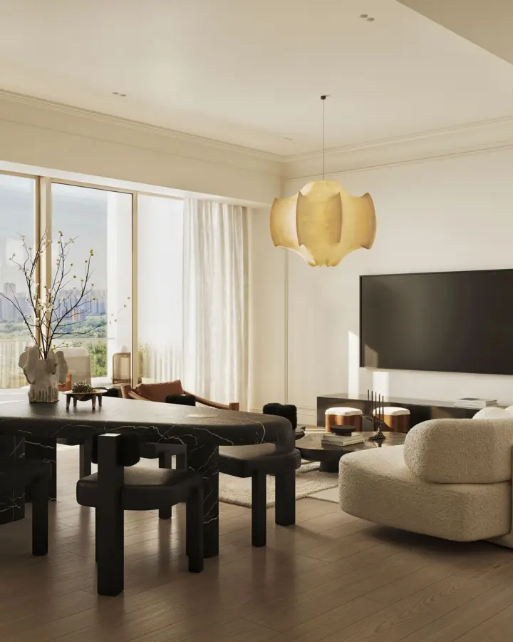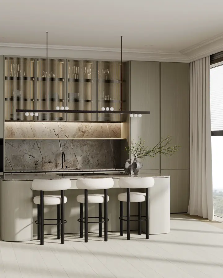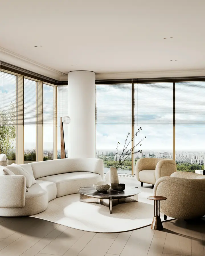 Все резиденции предлагаются с готовой авторской отделкой от именитой студии Quadro Room. Сдержанная палитра, закругленные порталы, плавные изгибы.